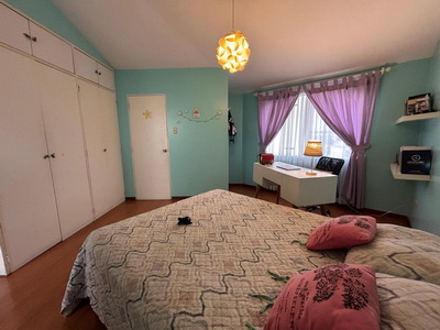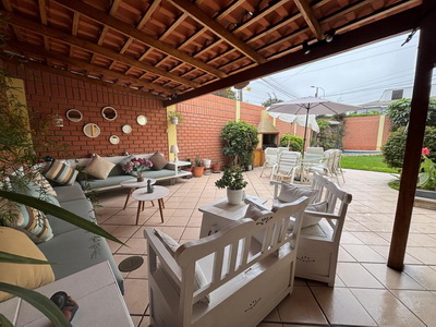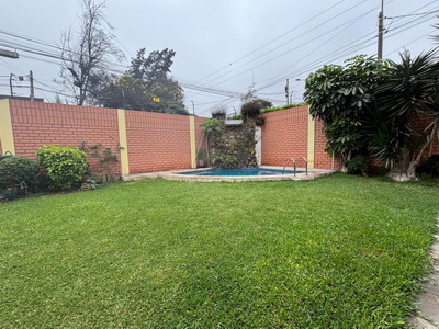 Casa de 2 plantas, AT. 506.66 M2, AC. 379.50 M2, recibo, baño de visita, escritorio, sala, comedor, amplia cocina con reposteros altos y bajo, isla y comedor de diario, sala de estar, terraza con bbq, jardín, piscina, lavandería, 2 cuartos de servicio con baño, depósito amplio. En el 2do piso se encuentra una sala de estar, 4 dormitorios, el principal con walking closet y baño incorporado, aparte otro dormitorio con closet y baño incorporado, un baño completo para los otros dos dormitorios. Cochera techada para 3 autos con puerta a control remoto. Cisterna y bomba hidroneumática, cerco eléctrico. Antigüedad de 31 años pero remodelada hace 20 años.