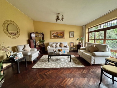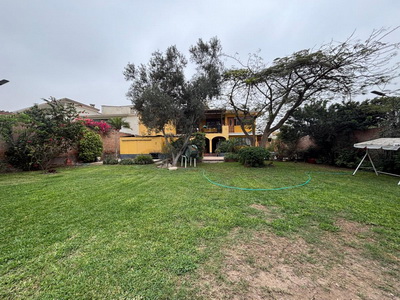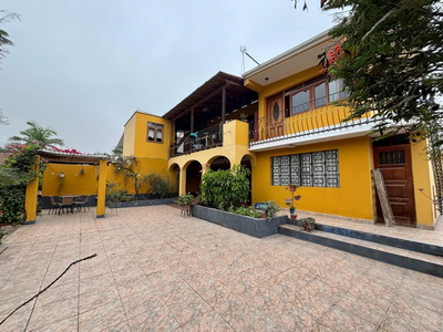 Casa de 2 plantas con dos inmuebles independientes, AT. 1100 M2, AC. 315.35, de una planta, la casa principal consta de baño de visita, sala de recibo, sala principal, comedor, cocina amplia con reposteros, lavandería, cuarto y baño de servicio, 4 dormitorios amplios, el principal con walking closet y baño incorporado, aparte un baño completo para los otros dormitorios, family room, terraza techada, jardín, cisterna, cochera para 6 autos, puerta de madera automática corrediza. Antigüedad de 50 años.