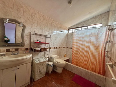 En el 2do piso tenemos la 2da vivienda con un AT. 220 m2 con ingreso independiente, consta de sala de recibo, comedor, cocina con reposteros, cuarto y baño de servicio, lavandería, escritorio, baño de visita, 3 dormitorios, el principal con baño incorporado, aparte otro baño completo, terraza, bbq. Antigüedad de 20 años.