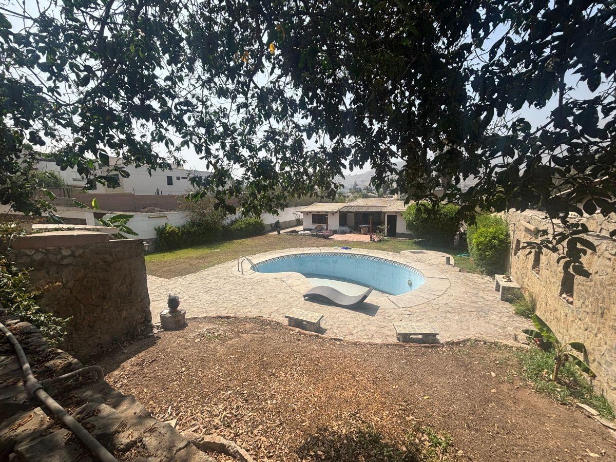 Casa A PRECIO DE TERRENO, 1 planta, AT. 1600 M2, AC. 280 M2, estilo rústico, recibo, escritorio, baño de visita, sala de estar, sala con chimenea, comedor, cocina con reposteros altos y bajos, 4 dormitorios, el dormitorio principal con baño incorporado, aparte otro baño completo, lavandería, cuarto y baño de servicio, terraza, amplio jardín, piscina, cochera para 4 autos.